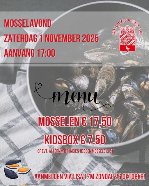 Het is weer tijd voor een ouderwets gezellige avond bij GMHC! Op zaterdag 1 november 2025 organiseren we een feestelijke Mosselavond in ons clubhuis. Deze avond staat volledig in het teken van samen genieten, verbinden én bijdragen aan onze club – en u bent als lid, ouders cq verzorgers natuurlijk van harte uitgenodigd! 🎉
