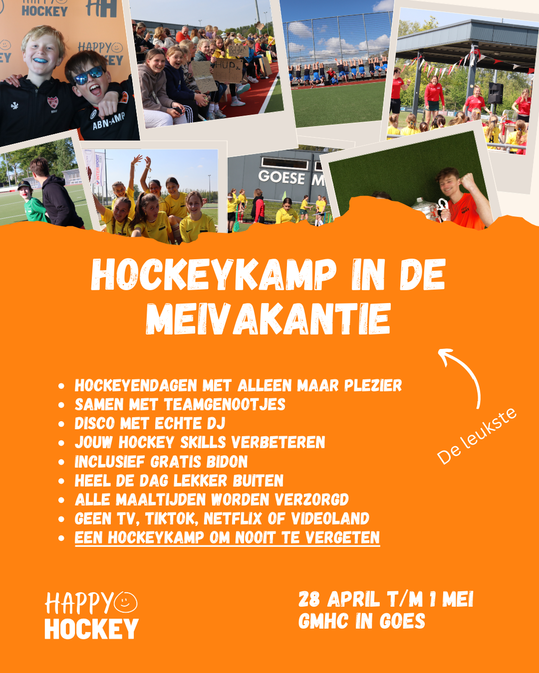 Kijk op onze website voor meer informatie over de hockeykampen of ga naar happyhockey.nl/hockeykampen. Aanmelden kan tot zondag 12 april.